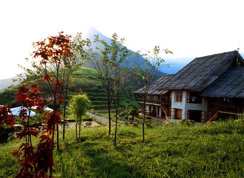 Topas Ecolodge is situated in the perfect location at two cone-shaped hills set deep in the spectacular Sapa valley of Northern Vietnam. Code words for our little place are simplicity, quality and character.Topas Eco Lodge provide daily transportation according to schedule from Sapa to the Eco Lodge. Even though the road is under constructing some parts are still dirt road. It takes about one to one and a half hour to go from Sapa to the Eco lodge. Despite the fact that some part are dirt road it is a interesting journey. On the way you will see daily life in the rice fields, minorities on there way to Sapa to sell handcrafts, vegetables etc.