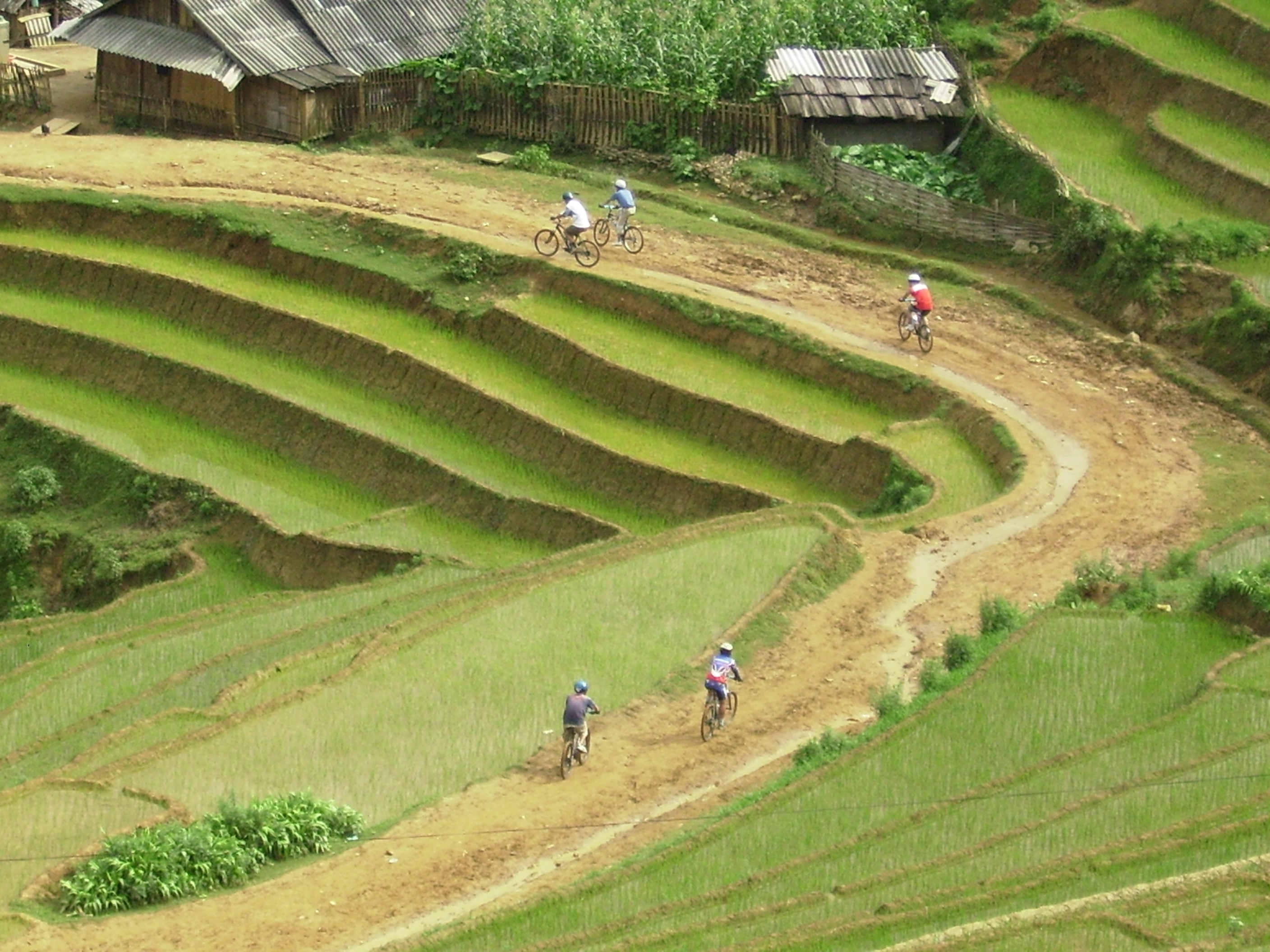 In the afternoon, we cycle to Ecolge, on the way you have an opportunity to see Muong Hoa Valley with terrace rice paddy field and visit Lao Chai Village where Black H’Mong minority lives. From Ecologe, you see panorama Ban Ho village with stilt house Tay’s minority. The car takes you back to Sapa. Free at your hotel.