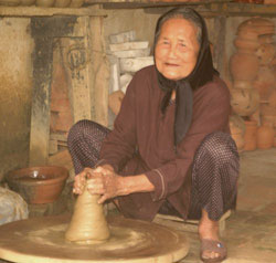 Thanh Ha villagers who made the bricks, tiles and floor slabs for the old buildings in Hoi An and the surrounding areas. The Thanh Ha potters are still working in the same way as their forefathers. With their clever and skillful hands, they turn clay into pretty flower vases, tea pots, piggy bank, wine bottles, water jars, kettles, cooking pots, or lovely ornaments of birds, turtles, buffaloes, cats and ducks. Nowadays many old buildings in Hoi An need restoring and the Thanh Ha villagers are the only contractors that can provide standardized bricks, tiles and floor slabs exactly like the ones when the old port town prospered.