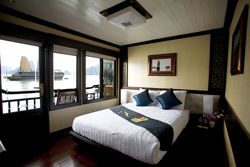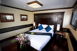 13.00 – 14.30: Enjoy an Asian Buffet lunch as the vessel sails to Halong Bay passing the Fighting cocks islet (Hòn Cặp Gà ), the Elephant leg islet (Äảo Chân Voi), the Castle islet (Hòn Äại Thà nh), the TITOP Island.