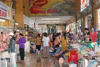 Today the market caters to the tourist dollars and is packed tight with stalls selling clothing, pottery, souvenirs, jewels and food. It is rumoured that depending on bargaining ability buyers will be given their purchase in various coloured bags as a sign to other vendors. The market was moved to its current building in 1912 but has existed in the area for hundreds of years. The permanent stalls are passed down in family for generations. Some of Vietnam's specialties can be bought cheaply here such as cobra and scorpion whiskey and silks. The market is open daily from 8 a.m. to 6 p.m. but an outdoor night market and food stalls surround the area until much later.